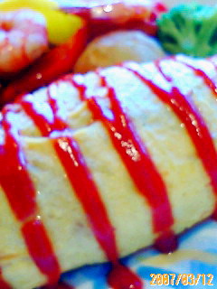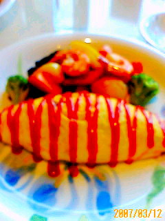 オムライスの黄色とケチャップの赤
