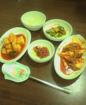 なかなかのキンパでしたよ、突き出し3品(キムチ、沢庵、佃煮)