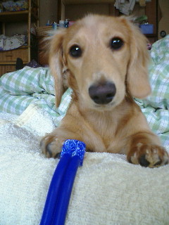 ママが目を離した隙に、我夢は台所のテーブルに乗り卵のパックを床に落とし、つぶれて流れ出した卵液をペロペロ舐めてたそうです