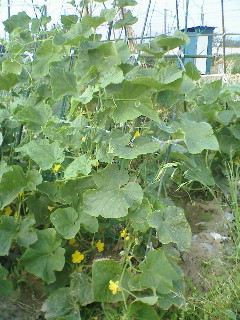 一日でも収穫を遅らせるとヘチマのような大きなキュウリに変身してしまいます