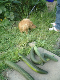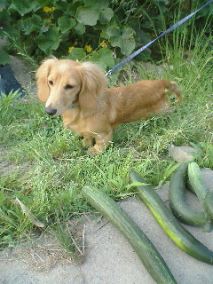 我夢の身体と比較しても、かなりの大きさのキュウリです